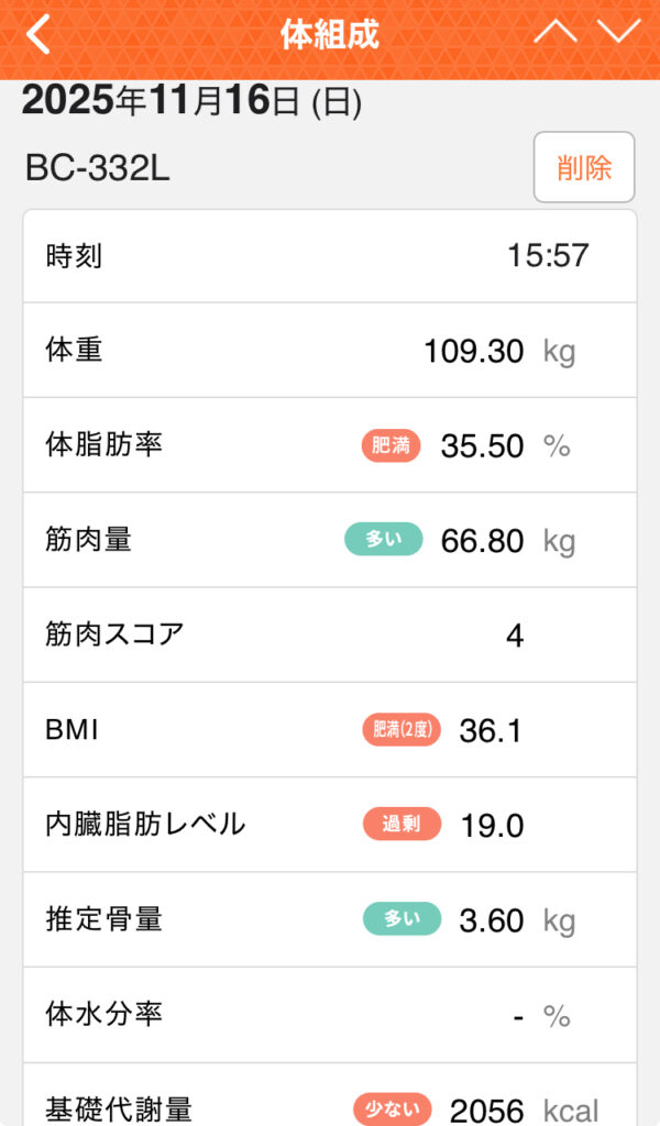 前回体重 110.70kg(第165回レコーディング 2025年11月9日)