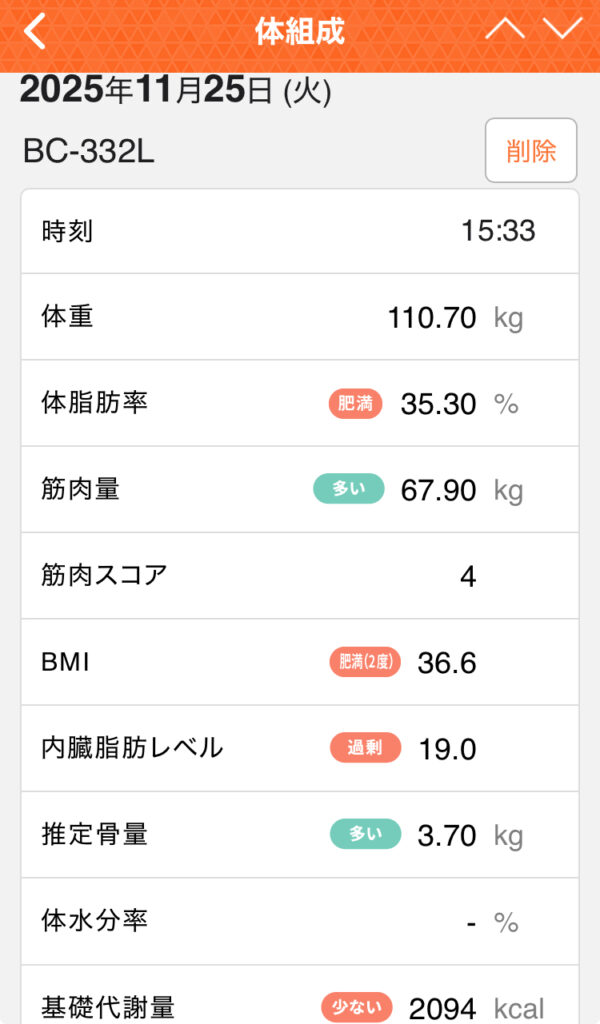 前回体重 109.30kg(第165回レコーディング 2025年11月16日)